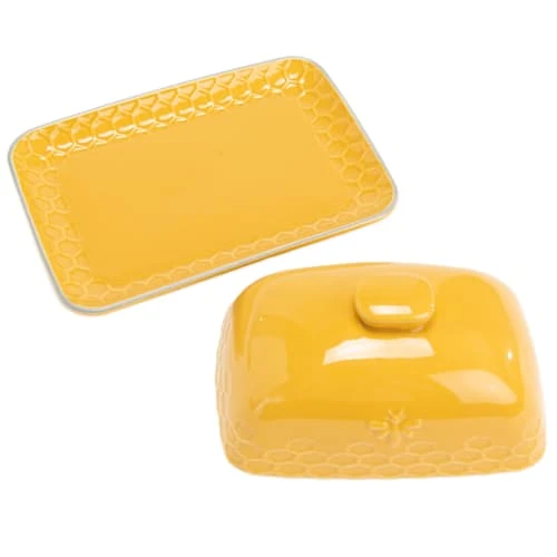 matière : Variez vos services de cuisine avec ce sublime beurrier couleur moutarde et ses motifs abeilles.Collection : Abeille Matière : Grès Couleur : Jaune Longueur : 13.5 cm Largeur : 19.5 cm Hauteur : 9 cm