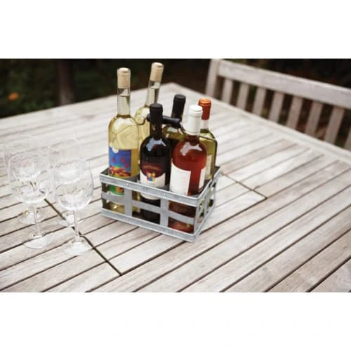 Aspect : Finition = Vieilli (zinc) • Matériau principal = Zinc • Matériaux secondaires = Bois de pin (anse) • Dimensions : Diamètre bouteille (en cm) = 8,00 • Hauteur (en cm) = 12,20 • Longueur (en cm) = 26,10 • Profondeur (en cm) = 17,50 • Autres caractéristiques : Avec anse = Oui • Capacité = 6 bouteilles taille standard • Collection = Esschert garden • Information complémentaire = Vendu sans bouteille • Poids (en kg) = 0,60 • Indispensable pour porter ou ranger les bouteilles, le panier à bouteilles zinc vieilli de la marque Esschert Garden présente aussi d’autres manières d’utilisation, notamment pour répartir les pots de fleurs, les pinceaux, ainsi que d’autres accessoires pour les loisirs créatifs…
