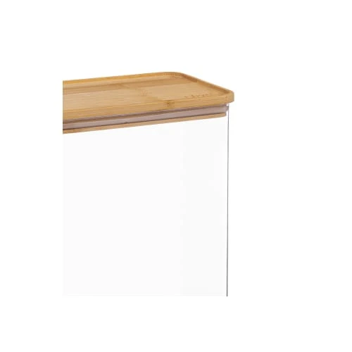 Boite hermétique et parfaitement empilable en plastique et couvercle en bambou.Dimensions: 20.4×10.4cmx27.4cmContenance: 4.3LCouleur: Transparent et boisMatière: Plastique et bambou