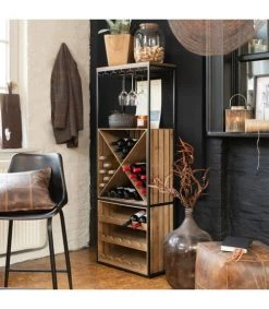 Aussi beau que pratique, il dispose de plusieurs rangements ouverts : des suspensions pour verre à pied, 12 compartiments à bouteille et des étagères pour accueillir les affaires de votre choix.