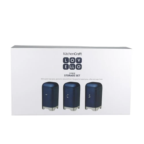 Organisez votre cuisine avec style grâce à ce set de boîtes de conservation pour thé, café et sucre KitchenCraft Lovello. Leur design original est inspiré des courbes rétro caractéristiques de la gamme Lovello, le tout modernisé par une magnifique surface texturée aux reliefs géométriques, pour un look unique qui sublimera à coup sûrs vos plans de travail. À l’image des autres articles Lovello, ces boîtes à sucre, à thé et à café sont à la fois simples, pratiques et ingénieuses. Rangez-y votre café moulu ou en grain, votre thé en sachet ou en vrac et votre sucre en poudre ou en morceaux : vous avez désormais tout à portée de main pour préparer une délicieuse boisson chaude. Leur couvercle sécurisé offre une conservation optimale. Ces boîtes de rangement sont également pourvues de lettres brillantes en relief (“C” pour café, “T” pour thé et “S” pour sucre).