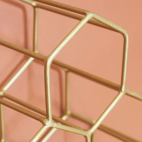 Idéal pour présenter et avoir ses meilleurs crus à portée de main sur votre plan de travail, optez pour ce casier / porte-bouteilles, signé Maison Tilleul. Entièrement réalisé en métal, on aime sa finition filaire et ses 6 compartiments en forme d’alvéole, qui lui confèrent une ligne aérienne et graphique. Le tout mêlé à une tonalité laiton antique qui apportera une jolie note Art déco à votre cuisine. Ce porte-bouteilles se décline également en coloris noir.
