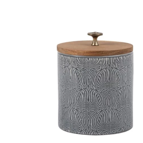 Maisons Du Monde Bocal En Faïence Motifs Graphiques Et Acacia H11