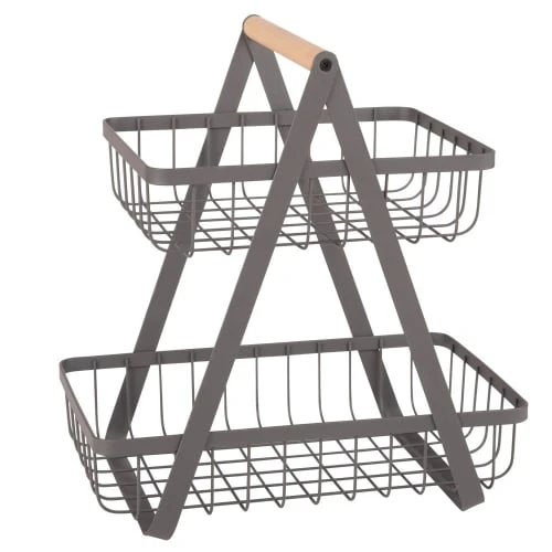 Maisons Du Monde Double Corbeille En Métal Gris Anthracite Et Hêtre