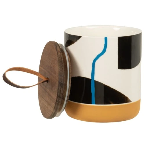 Maisons Du Monde Pot En Grès Motifs Multicolores Couvercle En Bois D’acacia D10