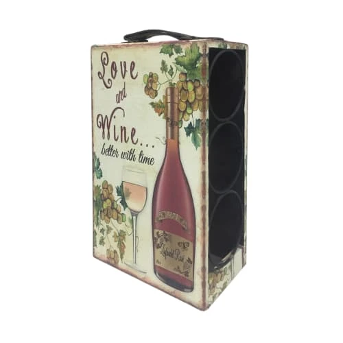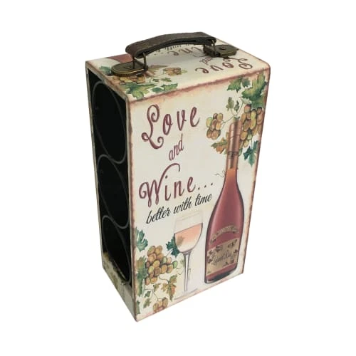 CARACTÉRISTIQUES : Dimensions : H 33 cm x L 11,5 cm x P 18 cm – Compartiments : 3 – Convient uniquement pour les bouteilles de 0,75 l – Couleur : Blanc Shabby Bordeaux – Matériau : MDF, PU – Cod. RE6628