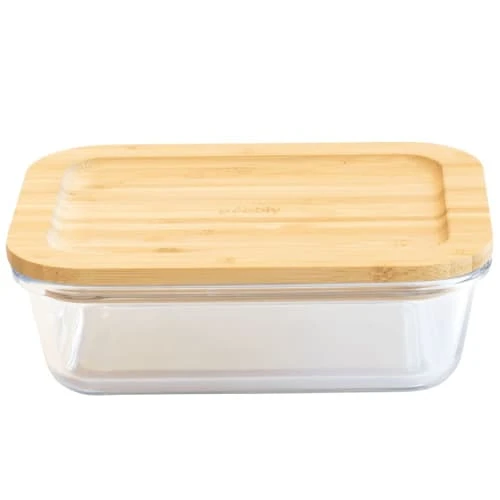 matière : Ces boîtes sont idéales pour conserver vos aliments. Le couvercle en bambou est doté d’un joint en silicone hermétique et est allié au verre borosilicate. Pratiques elles s’empilent pour un gain de place dans votre cuisine.Le contenant en verre borosilicate est compatible au four traditionnel, micro-onde ou lave vaisselle (sans le couvercle). Matière : Verre Couleur : Transparent Longueur : 20 cm Largeur : 15 cm Hauteur : 6.5 cm Capacité : 100 cl