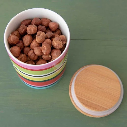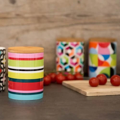 Dans ces petites boîtes décoratives en porcelaine, les aliments tels que les pâtes, la farine, le riz ou le café se seront parfaitement conservés. L’étanchéité hermétique du couvercle en bambou complète ce pot en tant que magnifique pince à oeil dans votre cuisine. Dimensions : diam 7.7 x 11cm Contenance : 0.275 litres Matières : porcelaine et bambou Passe au lave vaisselle