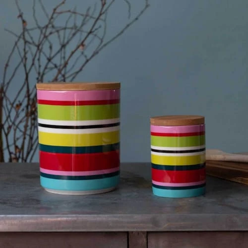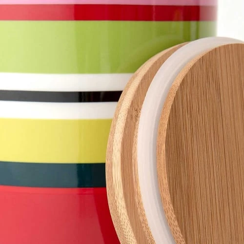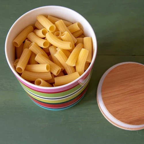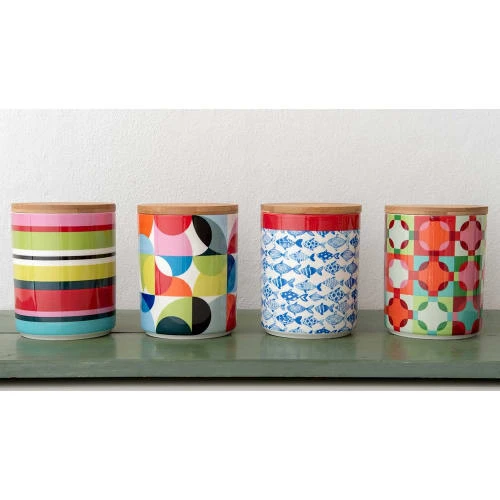 Dans ces petites boîtes décoratives en porcelaine, les aliments tels que les pâtes, la farine, le riz ou le café se seront parfaitement conservés. L’étanchéité hermétique du couvercle en bambou complète ce pot en tant que magnifique pince à oeil dans votre cuisine. Dimensions : diam 7.7 x 11cm Contenance : 0.275 litres Matières : porcelaine et bambou Passe au lave vaisselle